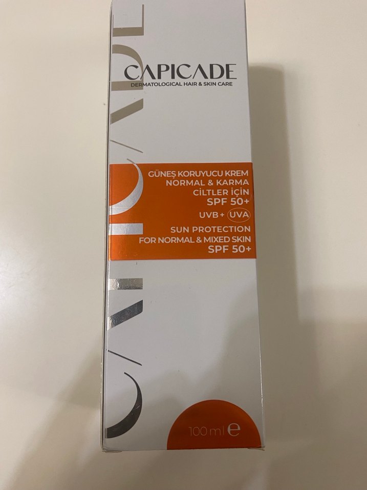 APICADE SPF50+ güneş koruyucu krem, normal ve karma ciltler için UVB ve UVA koruması sağlar, 100ml boyutundadır. ☀️