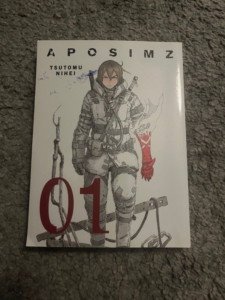 APOSIMZ 01, Tsutomu Nihei tarafından çizilmiş, detaylı sanat ve futuristik temaya sahip bir manga serisinin ilk cildidir.