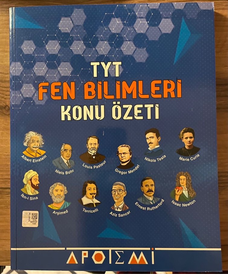 TYT sınavı için fen bilimleri konularını özetleyen, ünlü bilim insanlarının yer aldığı kitap.