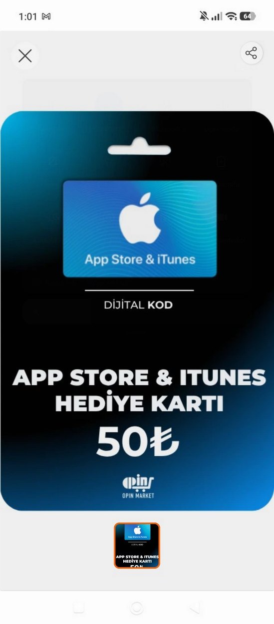 App Store & iTunes için 50₺ değerinde dijital hediye kartı. Uygulama, müzik ve daha fazlasını satın almak için kullanılabilir.