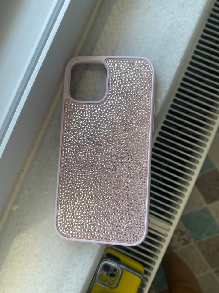 Apple marka, pembe pastel renkte, payetli yüzeye sahip, streetwear tarzında telefon kılıfı. ✨