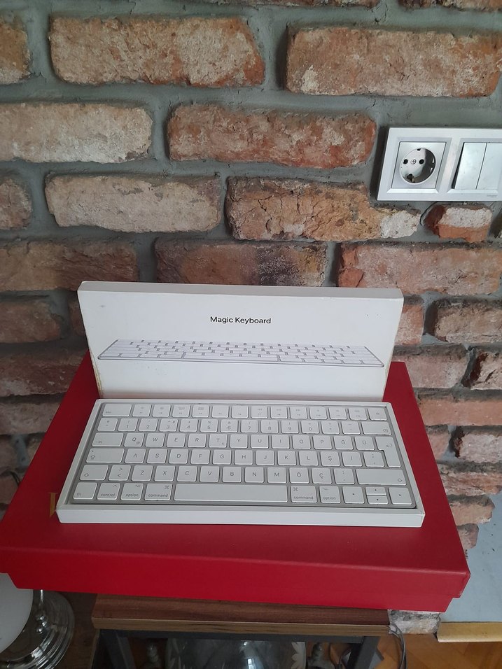 Apple Beyaz renkte, ince tasarımlı Magic Keyboard, rahat yazma deneyimi için temiz ve modern bir görünüm Fotoğrafları büyüterek inceleyin son fotoğrafta gördüğünüz gibi köşede ufak bir açılma mevcut çalışmasında problem yoktur ürün ve parça değişimine karşı iade kabul edilmemektedir