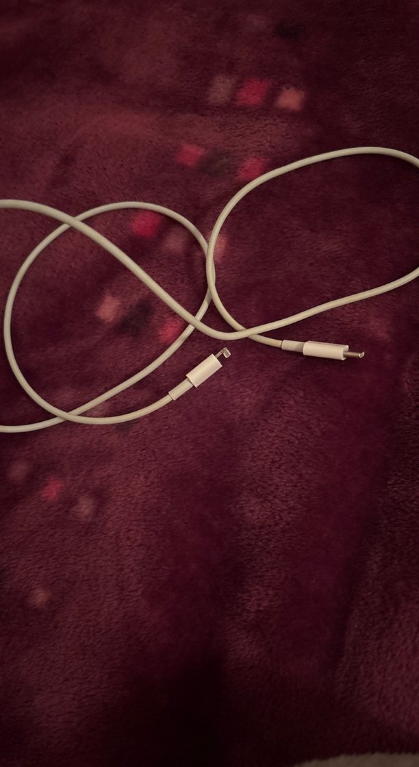 Her iki ucunda bağlantı noktaları bulunan, esnek ve uzun bir kabloya sahip telefon şarj kablosu. Apple orjinal kablodur
