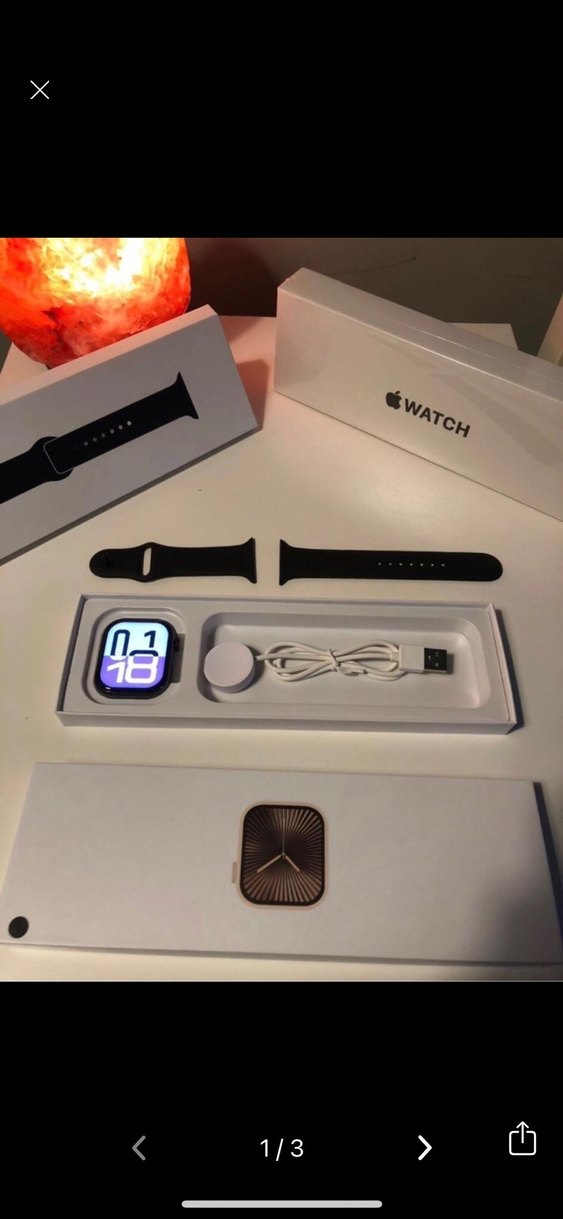 Siyah akıllı saat, siyah kayış ve şarj kablosu içerir. Dijital ekran saati gösterir. WATCH kutusunda. ⌚ ÜRÜN REPLİKADIR son resim de göründüğü gibi hafif lekesi vardır ama temiz ikinci eldir