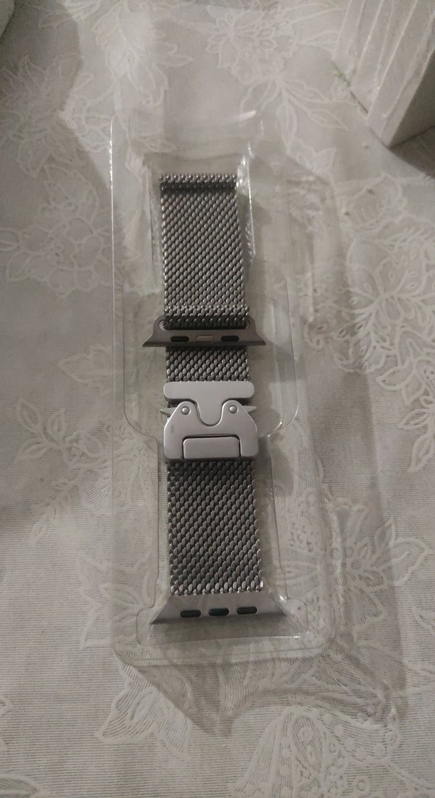 Gri renkte, esnek ve nefes alabilen dokuma yapıya sahip akıllı saat hasır kordonu. Güvenli kilit mekanizması bulunur. ⌚ 42-49 mm tüm Apple watchlara uygundur