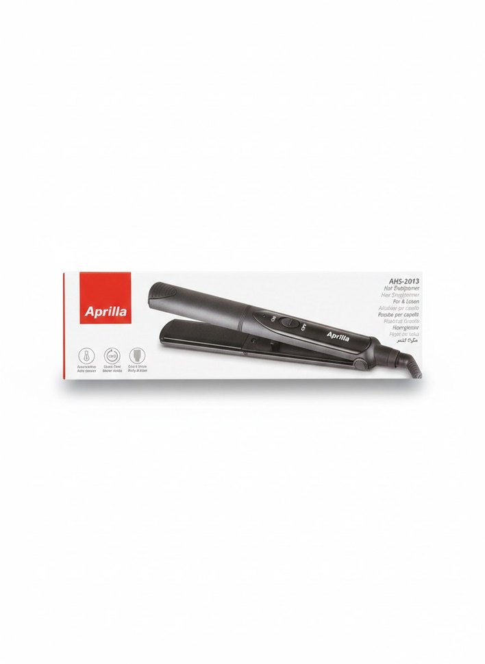 Aprilla saç düzleştirici, siyah ve gri renk kombinasyonuyla kolay kullanımlı kontroller sunar. Saçı etkili şekilde düzleştirir.