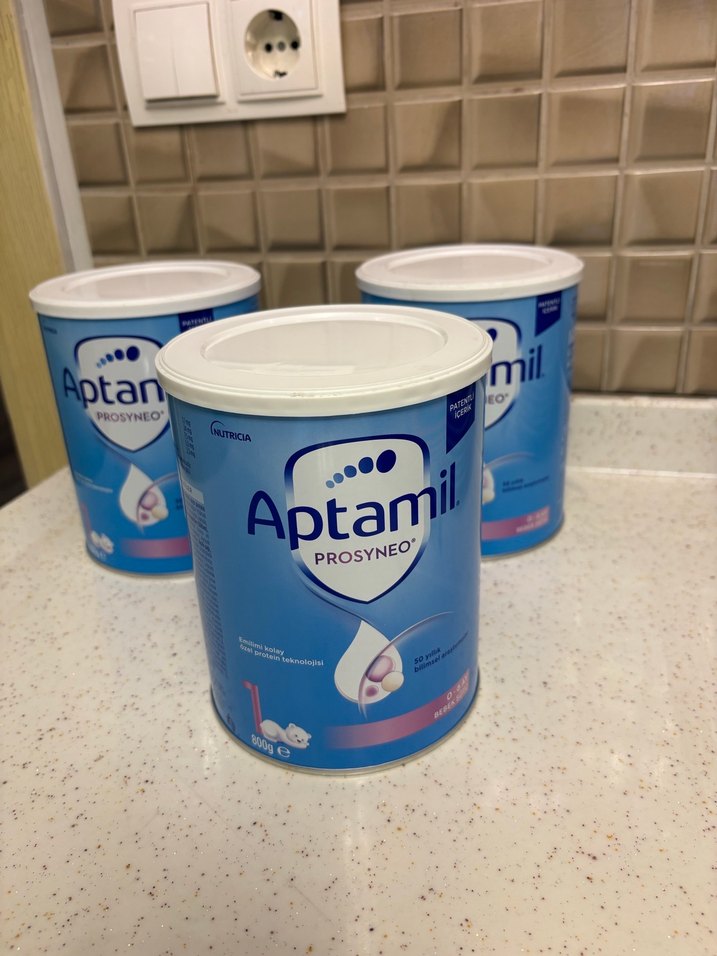 TEKLİ DE ALABİLİRSİNİZ . 0-6 ay 3 adet mama . 1 paketi 800 gr Aptamil Prosynéo bebek maması, pastel beyaz ambalajda, bebek beslenmesini destekler.