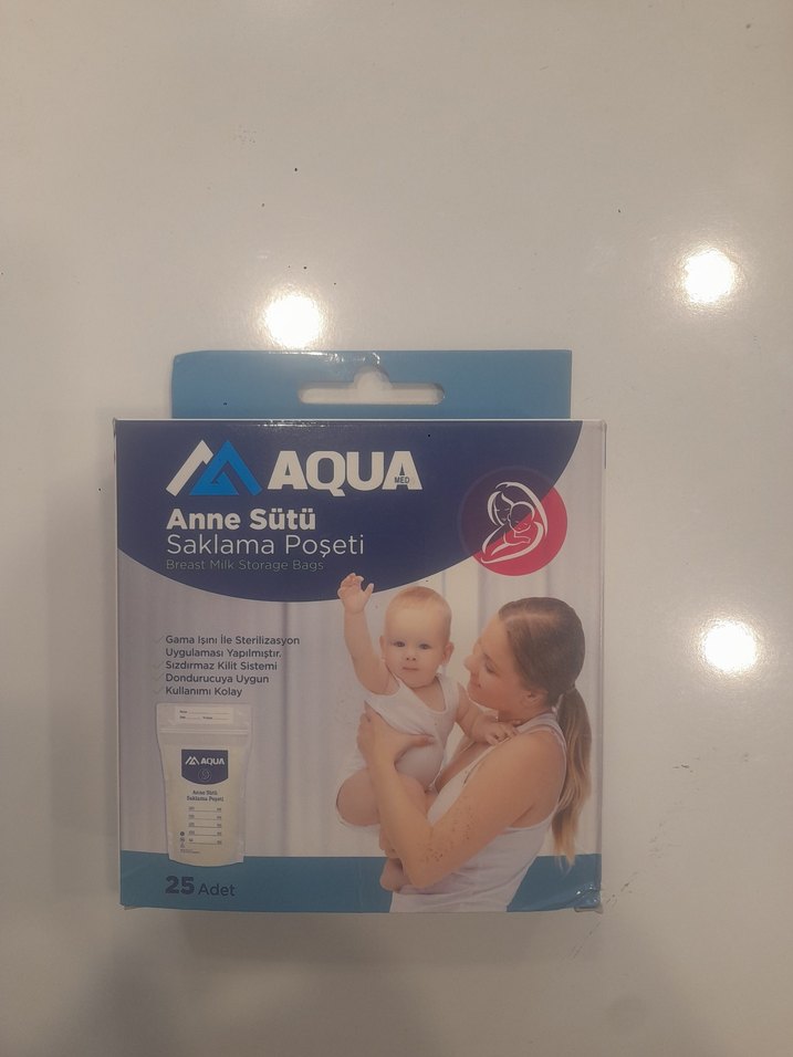 Aqua pastel mavi renkli, sterilizasyon için uygun 25 adet anne sütü saklama poşeti. Dondurmaya ve hijyenik saklamaya uygundur.