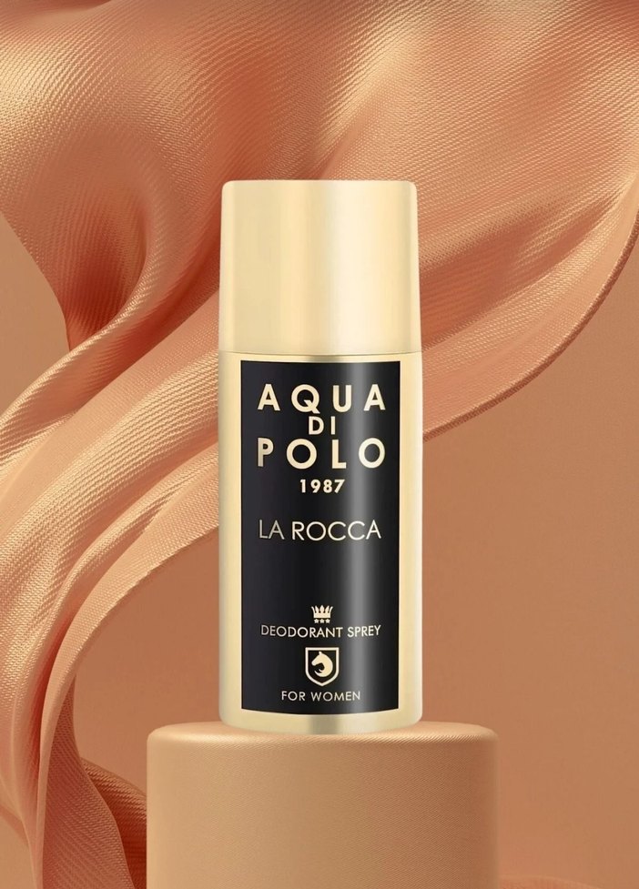 Aqua Di Polo 1987 La Rocca kadın deodorant spreyi, ferah bir koku ve uzun süre kalıcı tazelik sunar. Şık tasarımlı şişede.Baştan çıkarıcı ve bağımlılık yaratan parfümünüz şimdi deodorant formunda! Tatlı portakal çiçeği ve armut ağacının kırmızı karabiber ile dengelenmiş tatlı baharatlı kokusu sizi ilk anda içine alıyor. Orta notalardaki kahve, yasemin ve acıbadem kokunun kadınsı yanını vurgularken, alt notalardaki vanilya, sedir ve kaşmir ağacı bu eşsiz kokunun karakterini ortaya koyuyor. La rocca kadın deodorant özel formulü sayesinde gün boyu ter kokusundan korunmanıza yardımcı olur.