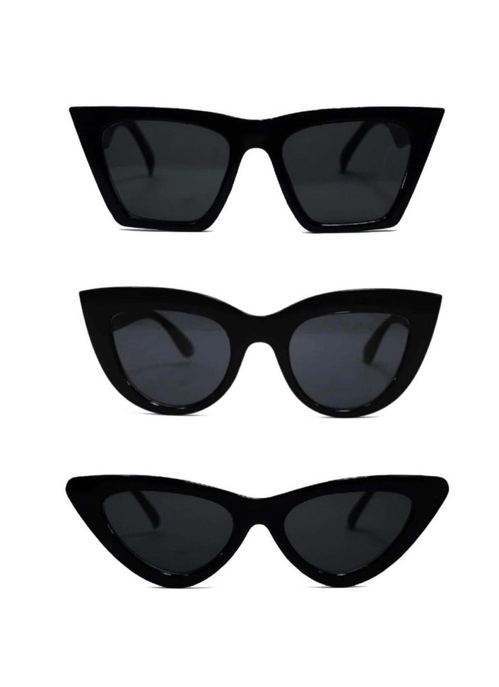 Üç farklı siyah gotik tarzda kadın gözlük seti. Koyu renkli camlar ve cesur, klasik çerçevelerle zahmetsiz şıklık sunar. Hiç kullanılmamış sıfır ürünlerdir