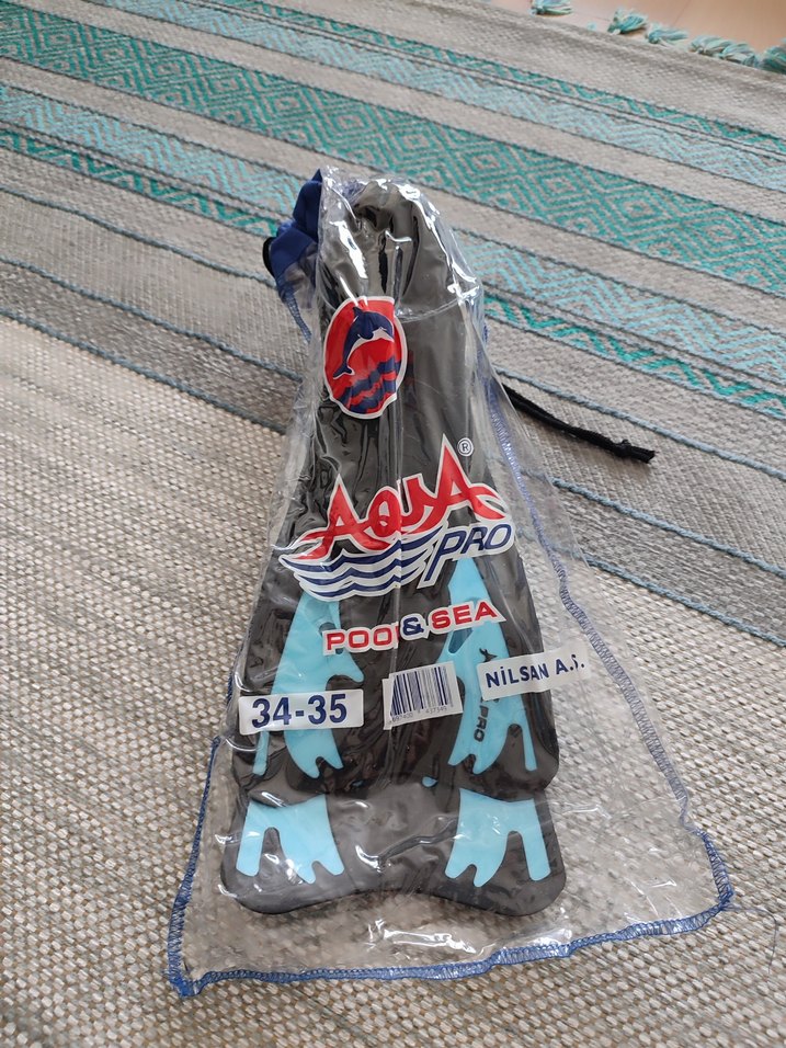 Aqua Pro markalı, 34-35 numara çocuk yüzme paletleri. Mavi ve gri renklerde, havuz ve deniz için uygun.Az kullanılmış.Marka temsili.
