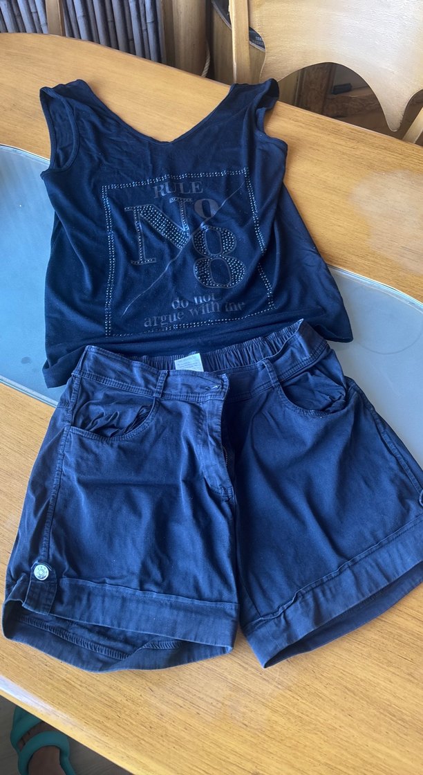 Aqua takım alt üst dantel detaylı Lacivert Mini Denim Şort