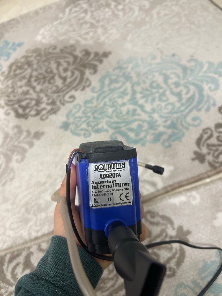 AquaWing AQ920FA akvaryum iç filtresi, 220-240V ve 50Hz ile 30W güçle çalışır, 1500L'ye kadar tanklar için uygundur. Mavi ve gri renklidir.