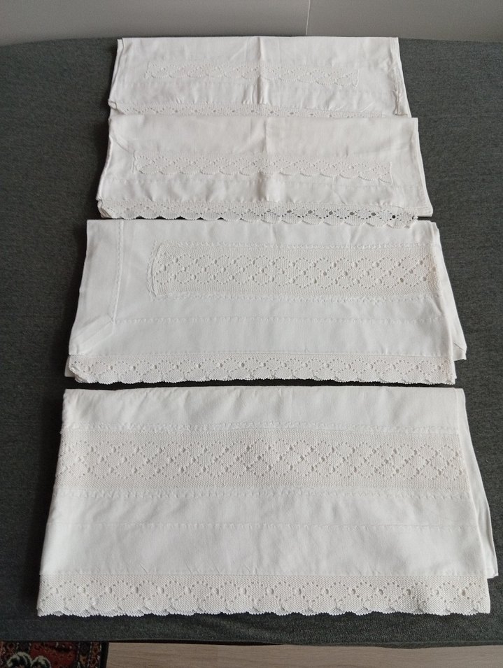 kullanılmıştır.yastik kılıfları sararmış.yikaninca cikarmi bilmiyorum.degerlendirmelik olarak kullanılabilir.iki karyola eteği , iki yastık kılıfı, bir kırlent. etek 184 x 92 cm , yastık kılıfı 75 x 46 cm, kırlent 74 x 57 cm