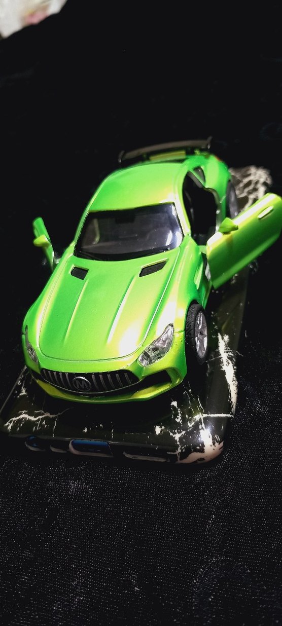 Parlak yeşil renkte, kapıları açılabilen detaylı oyuncak araba. Koleksiyon ve oyun için uygundur. kargoda sürpriz oyuncak ilave ediyorum