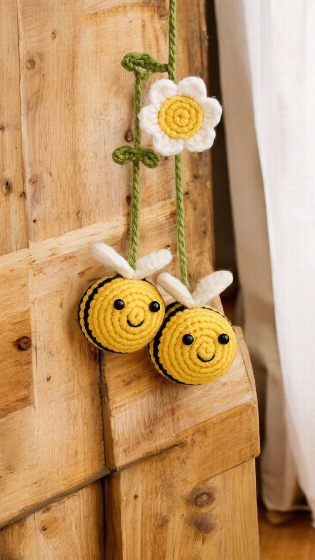 arı desenli tığişi arı ve çiçekli araba ayna aksesuarı. yeniyıl hediyesi