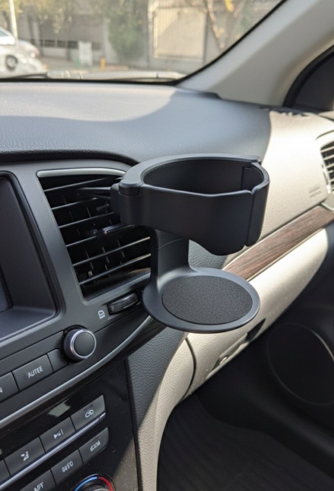 Araba hava çıkışına takılan siyah bardaklık, cihazınız için sabit bir yer sağlar. Kolay takılır ve kullanılır.