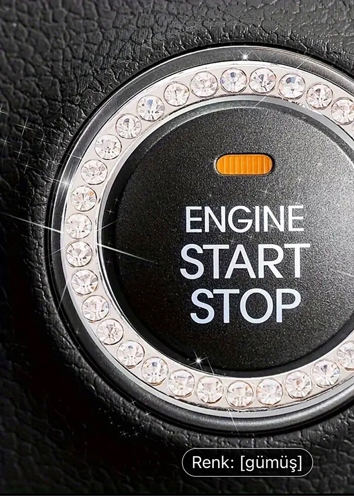 Araba Tek Düğme Başlatma Halkası Süslemesi, Taşlı Çember ve Kristal İşlemeli Elmas Anahtarlık Yüzük Araba Anahtarı Cihaz Dekorasyonu