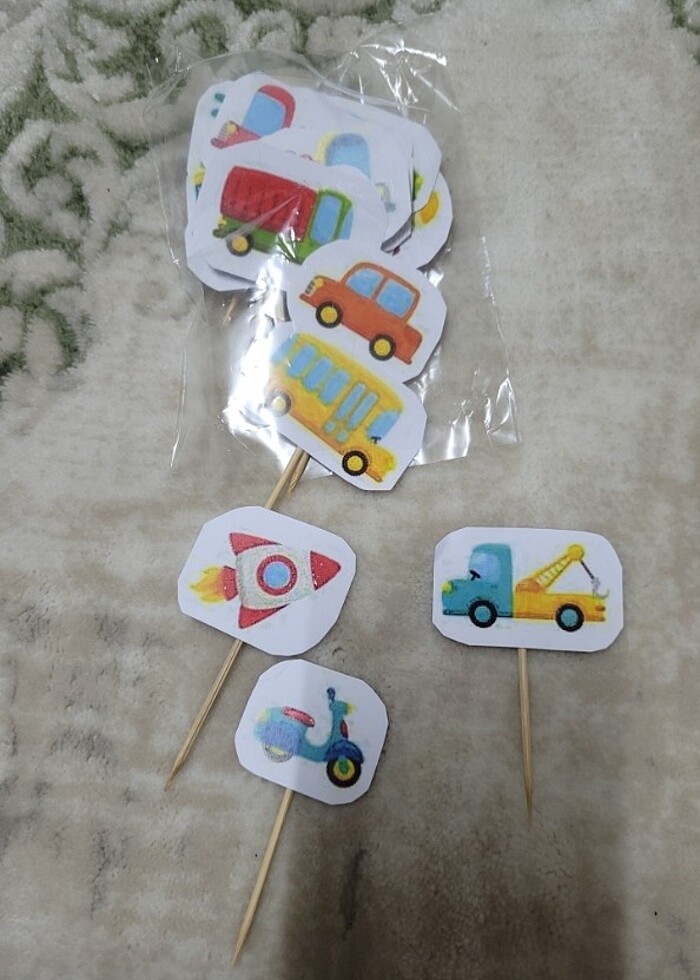 İsteğe göre çeşitli yapılır. Arabalar temalı cupcake süsü ve pipet süsü Cupcake süsü 120 Pipet süsü 120