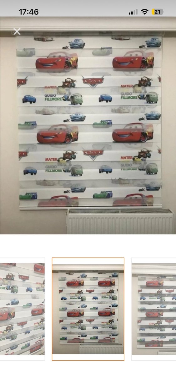 Arabalı zebra stor çocuk odası perdesi