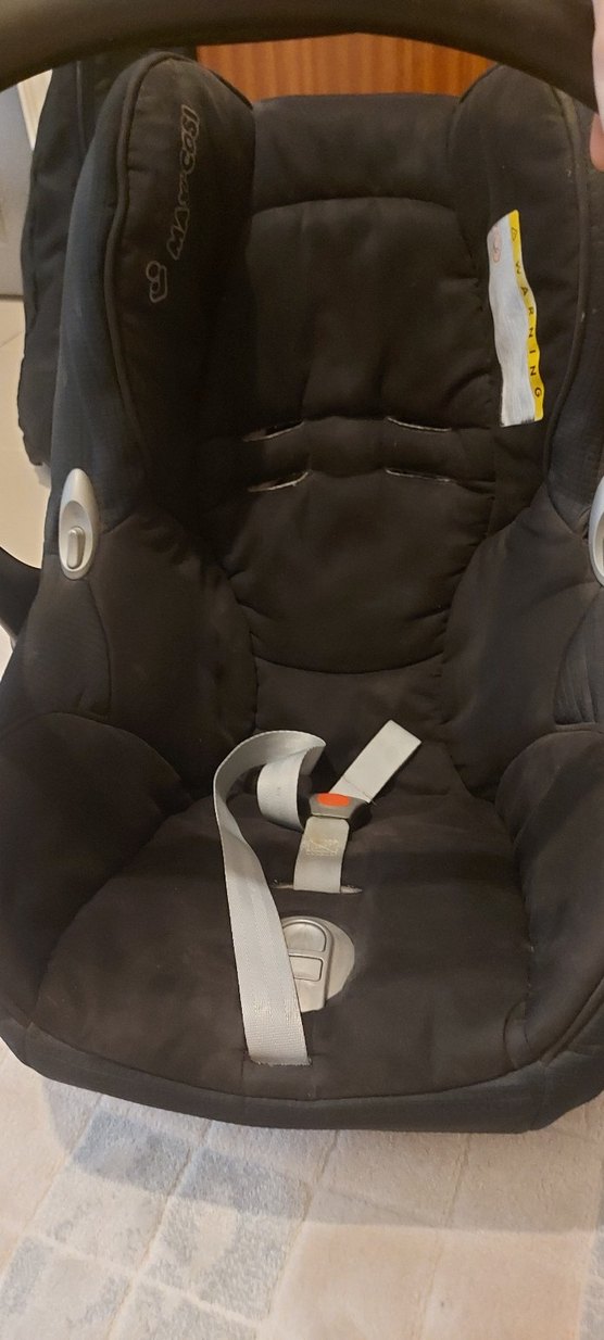 Ayarlanabilir kayışları ve yastıklı yanları ile gri çocuk araç koltuğu, seyahat sırasında çocukların güvenliği için uygundur.