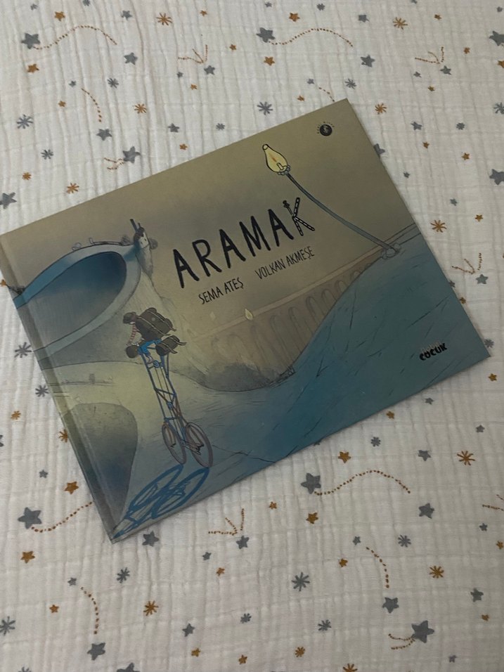 Sema Ateş'in "Aramak" adlı romanı, bisiklet ve sokak lambası illüstrasyonlu kapağıyla keşif dolu bir dünyaya davet ediyor. İlk sayfasında isme imza var.