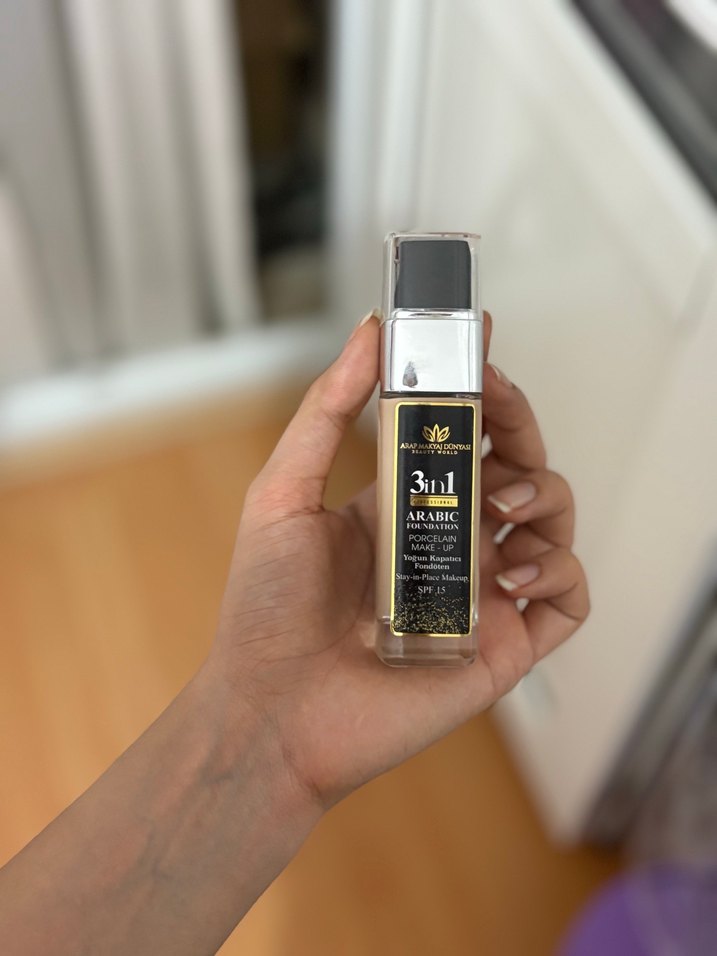 3in1 fondöten, parlak altın renkte olup porselen etkisi ve SPF 15 koruması sağlar. Çoklu faydaları bir arada sunar. ✨
