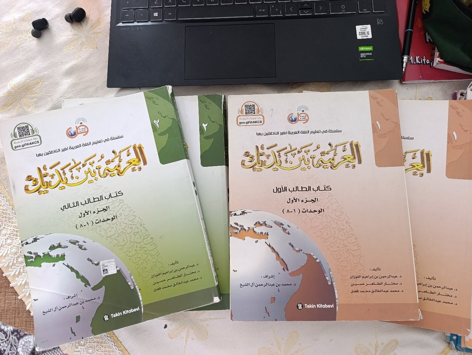 Tekin Kitabevi tarafından yayımlanan, Arapça dilinde öğrenci kitapları seti, ilk dersleri ve üniteleri içerir. El Arabiyyetü Beyne Yedeyk 1.Cit( 1/1- 1/2 ) El Arabiyyetü Beyne Yedeyk 2.cilt (2/1 -2/2) İlahiyat Hazırlık Seti, (Kavaid el Müşeccia Nahiv 3 Set)
