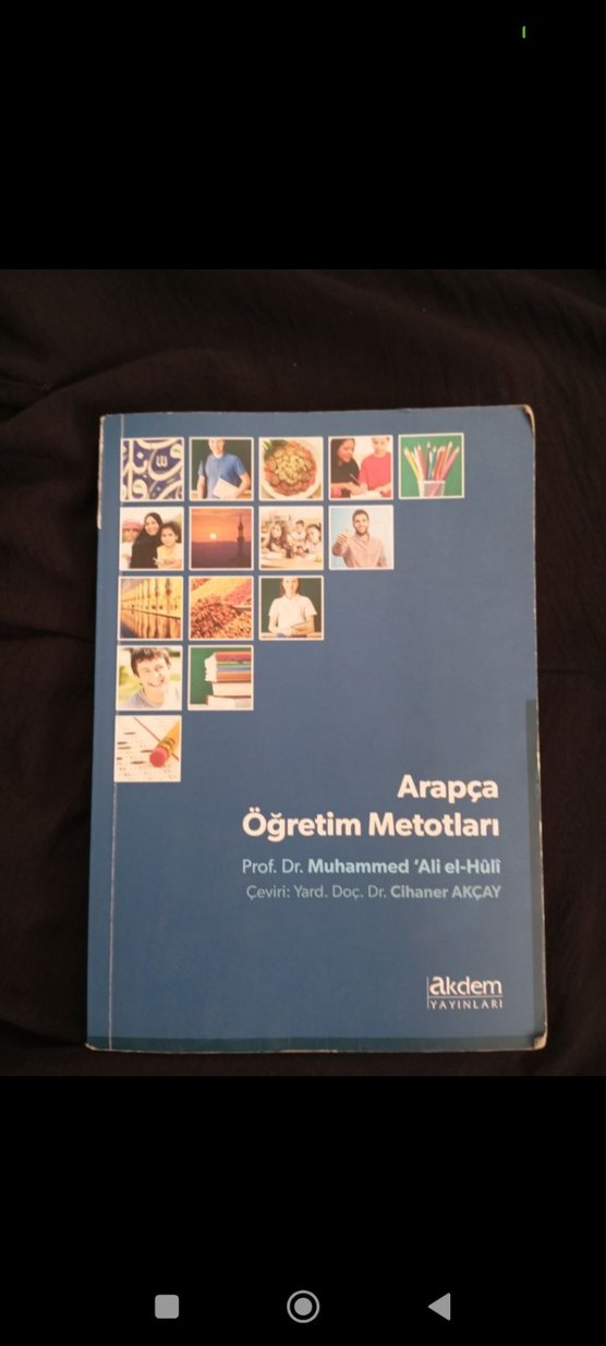 Prof. Dr. Muhammed Ali el-Hal'in yazdığı ve Yard. Doç. Dr. Cihaner Akçay tarafından çevrilen Arapça Öğretim Metotları kitabıdır. Akdem Yayınları tarafından yayımlanmıştır. Birkaç sayfanın altı çizilidir.