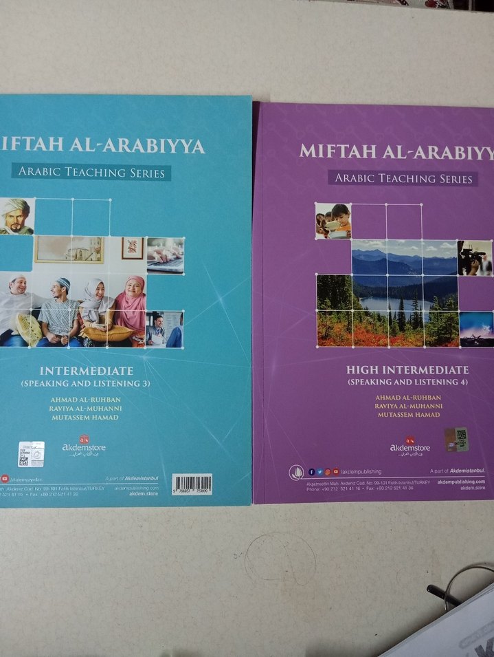 Orta ve üst-orta düzeyde konuşma ve dinleme becerilerine odaklanan iki Arapça öğretim kitabı seti. Hiç kullanılmadı temizdir.