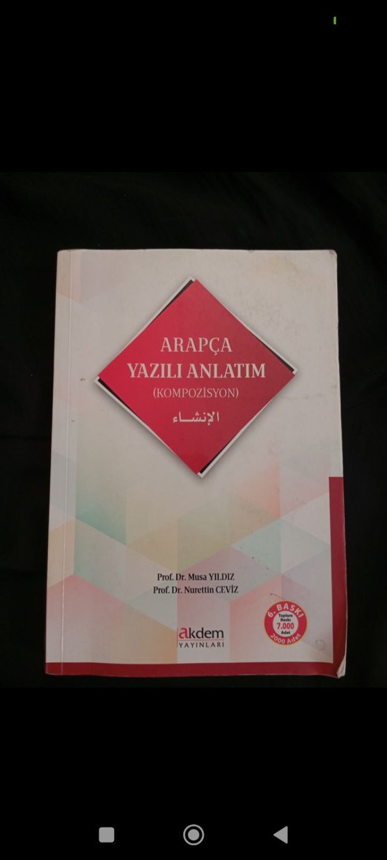 Prof. Dr. Musa Yıldız ve Prof. Dr. Nurettin Ceviz tarafından yazılan, Arapça yazılı anlatım ve kompozisyon konularını içeren Akdem Yayınları kitabı. 7.000 baskı sayısına sahip. Bazı sayfaları yapılmıştır.