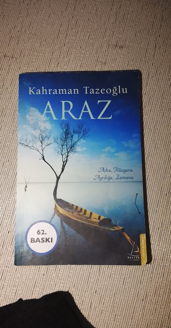 Kahraman Tazeoğlu'nun Araz adlı romanı, aşk, rüzgar, ayrılık ve zaman temalarını işler. 62. baskıdır. kitaplık boşaltıyorum sayfama göz att.