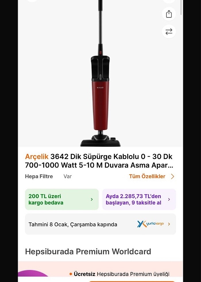 Arçelik 3642 dik süpürge kablolu