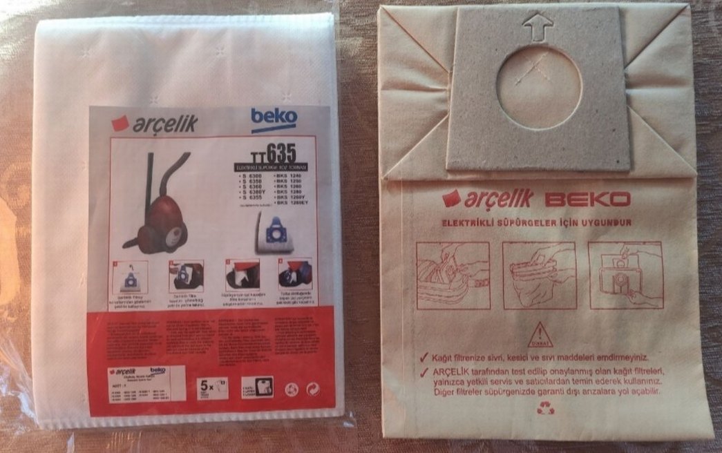 Arçelik 2 farklı model toz torbası. Kağıt olan 30, bez olan 20 tl. Kağıttan 6 adet Bezden 4 adet bulunmaktadır. Toplu satış yapılabilir.