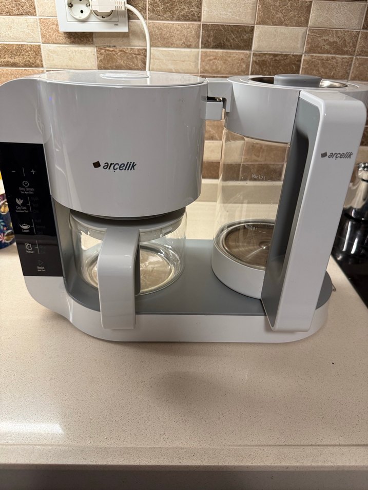 Sorunsuz çalışmakta. Temiz. Kırığı çatlağı yok. Su kaynatma özelliği de var. İADE YOKTUR. Arçelik çay makinesi beyaz ve gri renklerde, cam sürahili ve kullanımı kolay kontrollere sahiptir. ☕