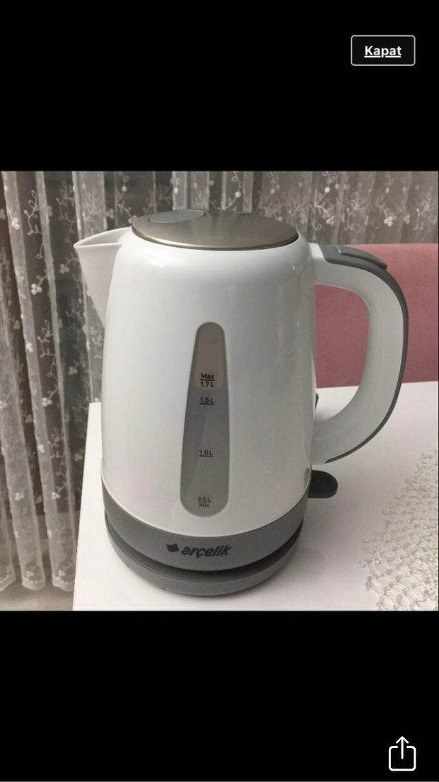 Arçelik markalı, 1.7 litre kapasiteli beyaz ve gri renkli su ısıtıcısı. Su seviyesi göstergesi ve rahat tutma sapı bulunur. İçi çeliktir garantisi yok kullanılmış üründür hiçbir problemi yok çaycım olduğu için getek kalmadı bu nedenle satılık. İnternette şu an en ucun 7000 tl satışta uygun veriyorum