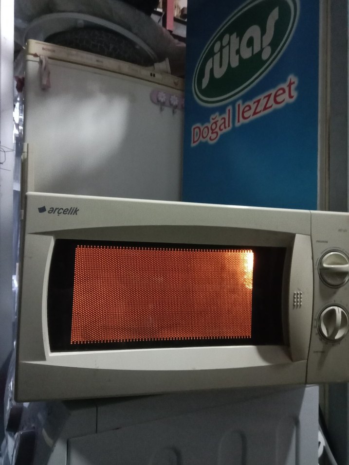 Arçelik mikrodalga fırın, gri renkte olup iki kontrol düğmesi ve cam kapak ile donatılmıştır. Mutfakta pratik ısıtma ve pişirme sağlar.