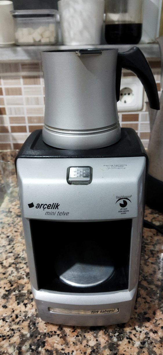 Arçelik Mini Telve gri kahve makinesi, kompakt tasarıma ve kolay kullanımlı düğmeye sahiptir. bir sorunu yoktur iki kişilik bol köpüklü kahve içimi sunar☕