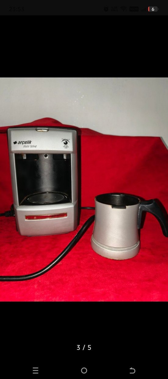 Gri renkli Arçelik Mini Telve kahve makinesi, siyah saplı ve kompakt yapısıyla Türk kahvesi için uygundur. ☕