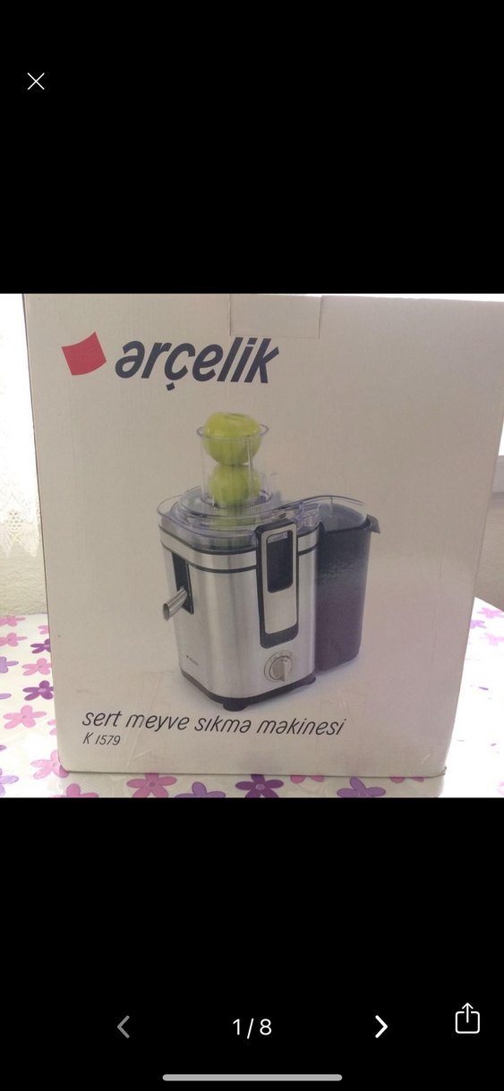 1 kez denedim ihtiyacım yok yerim yok bu yüzden satışta çizik yok hiçbir şey yok Arçelik K1579 sert meyveler için sıkma makinesi, açık yeşil üst kısmı ve şeffaf meyve suyu haznesi ile.