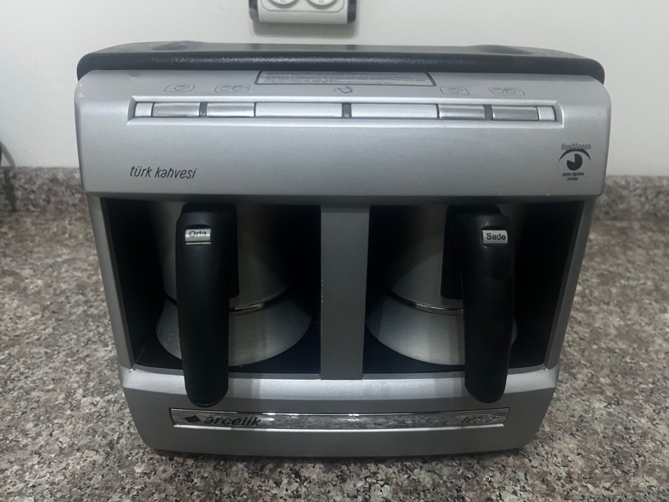 HİÇBİR SORUNU YOK, BAKIMI YAPILDI ÇOK TEMİZ KULLANILDI, CEZVELERİ ALEMİNYUM İÇİ TEFLON KAPLIDIR , DAHA ÇABUK VE DAHA KÖPÜKLÜ KAHVE YAPAR , TEST EDİP ALABİLİRSİNİZ