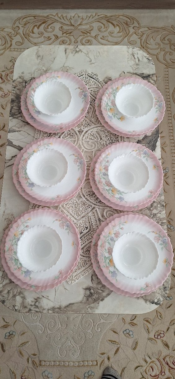 Arcopal 6 Kişilik Yemek Takımı Toplam 18 Parça 6 Adet Arcopal Servis Tabağı , 6 Adet Arcopal Çukur Yemek Tabağı , 6 Adet Markasız Kase Kaseler Aynı Model Aynı Malzeme Altında Marka Yazmıyor Toplam 18 Parça Pırıl pırıl Vitrin Ürünü