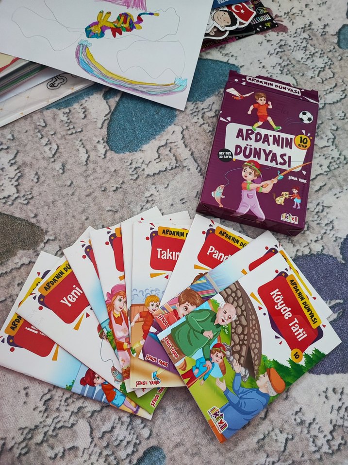 Renkli resimlerle dolu, farklı maceralar ve karakterler içeren 'Arda'nın Dünyası' çocuk kitapları seti.