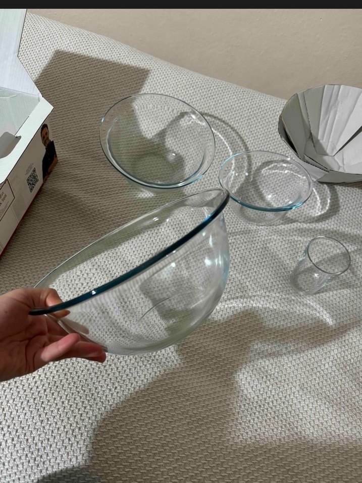 , şeffaf camdan yapılmış kase seti, sunum veya karıştırma için uygundur. Hafif ve şeffaftır.