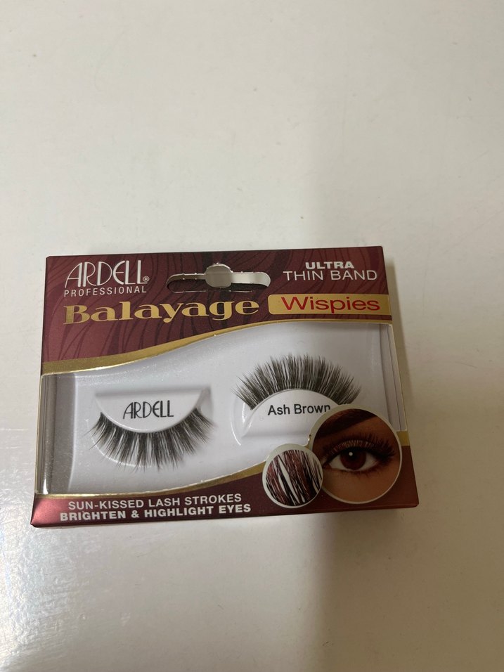 Ardell Balayage Wispies sahte kirpikler, ince bantlı ve kül kahverengi tonunda doğal görünüm sağlar. Gözleri aydınlatır ve vurgular.