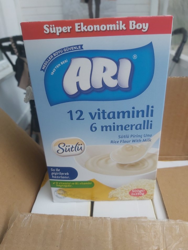ARI sütlü pirinç unu, 12 vitamin ve 6 mineral içerir. 500g süper ekonomik boyda, sütle besleyici yemekler hazırlamak için uygundur. 4 paket vardır