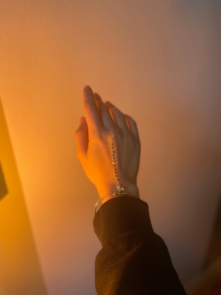 Bej renkte zincir detaylı kadın el zinciri, minimal ve sokak stili için uygundur. Parlak ve desensiz yapısıyla günlük kullanıma uygundur. ✨