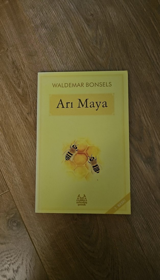 Waldemar Bonsels'in "Ari Maya" adlı romanı, arı ve petek görselli kapak tasarımıyla.