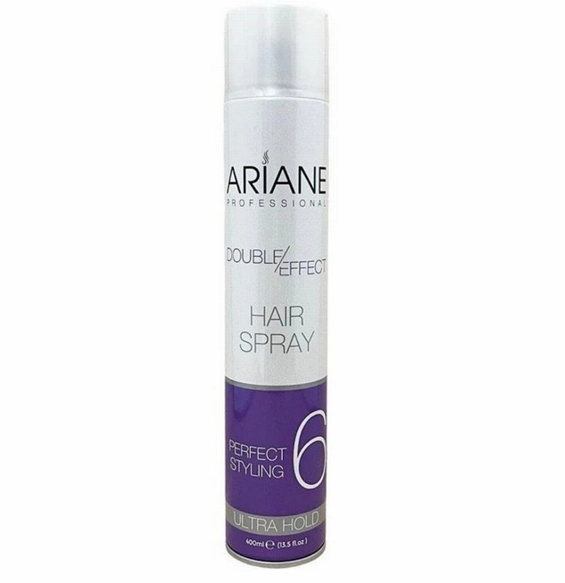 Ariane Profesyonel Double Effect saç spreyi, ultra tutuş sağlar ve saçları gün boyu sabit tutar. 400ml sprey kutuda sunulur. ♀️