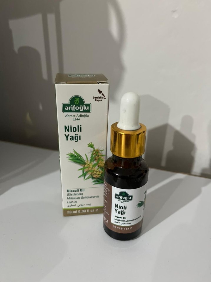 Arifoğlu Nioli Yağı, 20 ml damlalıklı şişede doğal yağ sunar. 2 adettir, 1 tanesi kutuda ve hiç kullanılmamıştır. diğeri ise 4\1 doludur.